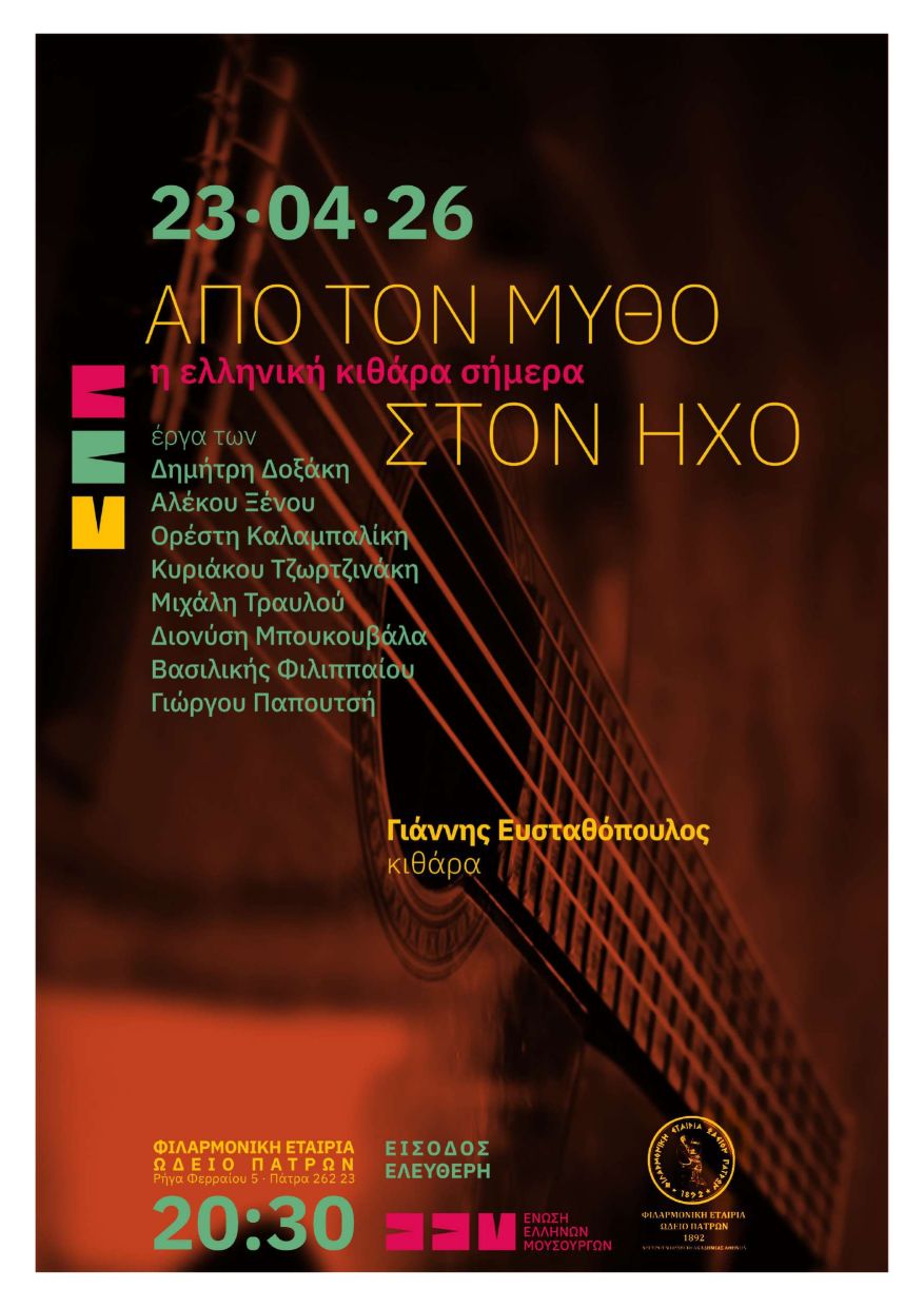 Την Τετάρτη 22 Απριλίου 2026, στις 8.30μ.μ. η Φιλαρμονική Εταιρία Ωδείο Πατρών διοργανώνει συναυλία για 2 πιάνα με τους: Χαρά Ιακωβίδου και Ludovic Frochot. Για πρώτη φορά παρουσιάζονται, σε μεταγραφή 12 από τους “36 ελληνικούς χορούς για ορχήστρα” του Νίκου Σκαλκώτα.