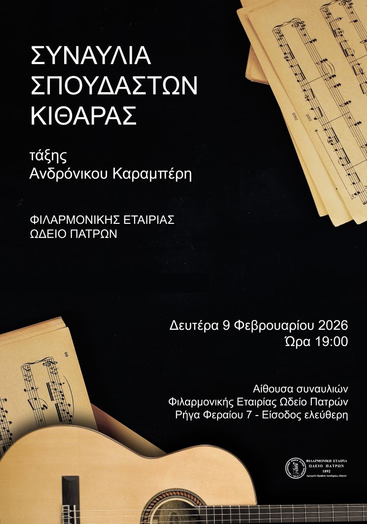 Η Φιλαρμονική Εταιρία Ωδείο Πατρών, ιδρύθηκε το 1892. Έχει βραβευτεί με το Αργυρούν Βραβείον της Ακαδημίας Αθηνών για το μουσικό και εκπαιδευτικό της έργο. Η έδρα της Φιλαρμονικής Εταιρίας Ωδείο Πατρών βρίσκεται στο κέντρο της πόλης (Ρήγα Φεραίου 7) σ’ ένα νεοκλασσικό κτίριο, διαθέτοντας μια καταπληκτική αίθουσα συναυλιών, ενώ οι αίθουσες διδασκαλίας αναπτύσσονται στο συνεχόμενο πενταόροφο κτίριο. Στη Φιλαρμονική Εταιρία Ωδείο Πατρών και στις σχολές Πιάνου, Πνευστών, Κρουστών, Εγχόρδων, Θεωρητικών και τραγουδιού, δίδαξαν εκλεκτοί Έλληνες και ξένοι μουσικοί, απέκτησαν μουσική μόρφωση χιλιάδες νέων και έτσι δημιουργήθηκε στην Πάτρα στερεά και συνεχής μουσική παράδοση.